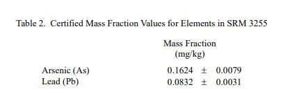 水分測定:SRM 3255 的水分含量在 NIST 通過 (1) 在 7 天內(nèi)冷凍干燥至恒重進(jìn)行測定; (2) 用高氯酸鎂在干燥器中室溫干燥28 d; (3) 在 80 ℃的強(qiáng)制通風(fēng)烘箱中干燥 2 h。對使用所有三種技術(shù)獲得的未加權(quán)結(jié)果進(jìn)行平均,以確定 (0.9687 ± 0.0055) 克干質(zhì)量/克原樣質(zhì)量的轉(zhuǎn)換因子,用于將數(shù)據(jù)從原樣轉(zhuǎn)換為干質(zhì)量;此值上顯示的不確定性是擴(kuò)展的不確定性 (k = 2),代表 95% 的置信水平。從水分測量中獲得的轉(zhuǎn)換因子 (0.28 %) 的不確定度部分包含在認(rèn)證值和參考值的不確定度中,以干質(zhì)量為基礎(chǔ)報(bào)告,在本證書中提供。