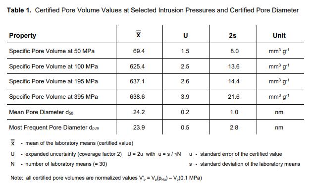此 SRM/CRM 旨在用于在 0.1 MPa 和 400 MPa 之間的壓力范圍內校準和檢查高壓汞孔隙率計的性能。